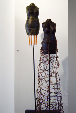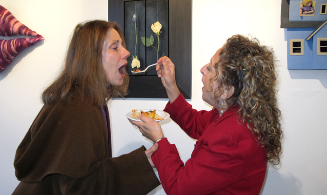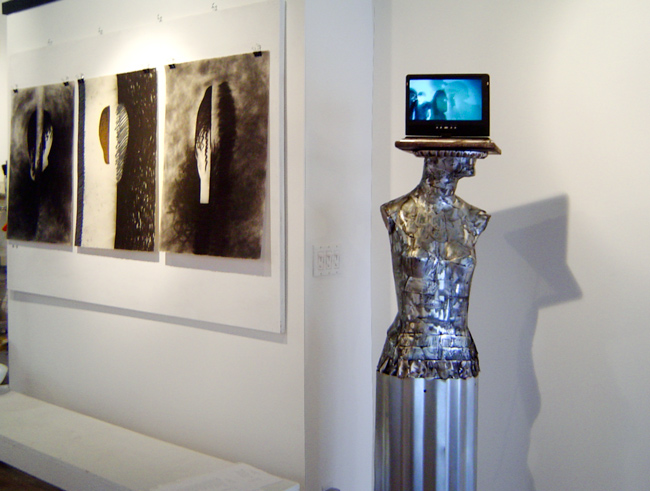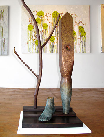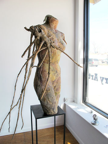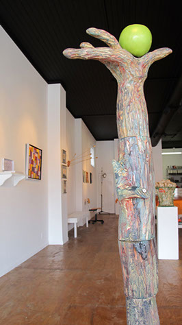 In it, Rick and Suzanne changed places: he created a series of sculptures all about the “art world” while Suzanne has a whole new body of 2D gods and goddesses! Stop by and let us know what you think.