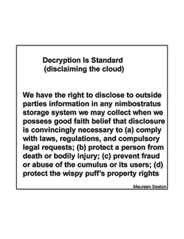 Our upcoming exhibition, opening Friday, December 7, entitled “Cloud9″ highlights nine artists’ responses to the ”Information Cloud”. Don’t miss it!
