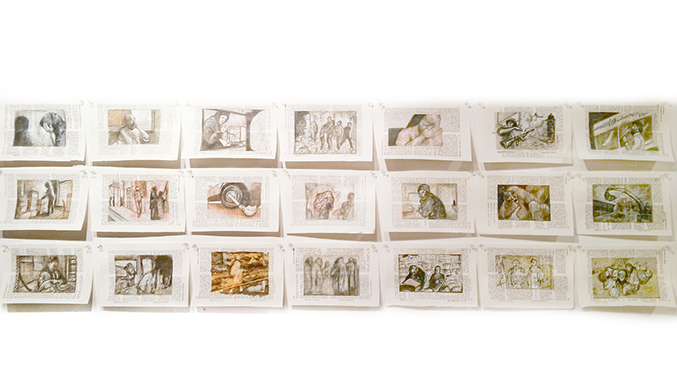 “Pages” features six, Chicago women artists- each who have a unique take on the notion of the “page”. Using a variety of media techniques, they investigate a range of processes, structural properties, & the serial qualities of the page.